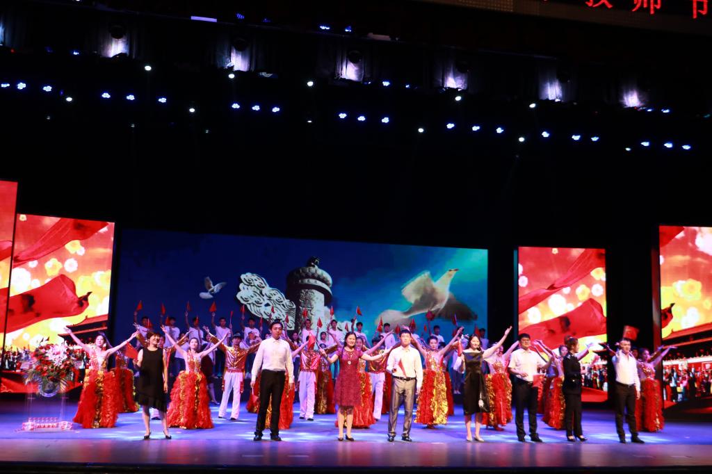 表彰大会在雄壮激昂的校歌声中圆满落下帷幕。表彰大会通过多种艺术形式表达对人民教师的节日礼赞,抒发学子对老师的感恩情怀,讴歌了人民教师默默耕耘、无私奉献,用爱心、知识、智慧点亮学生心灵的崇高师德,弘扬了全社会尊师重教的良好风尚。