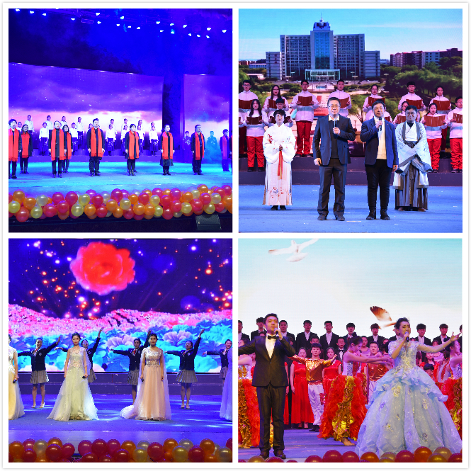 本次诗歌朗诵音乐会由“华夏春语”“师苑颂歌”“时代诗篇”三个篇章组成。师生们通过诵读演绎风格各异、题材广泛的诗歌散文作品,为观众呈现了一场高雅艺术的文化盛宴。由音乐与舞蹈学院张舒然,王黎平带来的《春天的故事》《我爱你中国》拉开了本场诗歌朗诵音乐会的序幕;文学院地方语言优势特色学科师生带来的经典诵读《少年中国说》,极力赞扬少年勇于改革的精神,鼓励人们肩负起建设少年中国的重任,表达了要求祖国繁荣富强的愿望和积极进取的精神;由马克思主义学院师生带来的经典朗诵《青年在选择职业时的考虑》,颂扬了马克思在漫长的斗争岁月中始终不渝地忠实于少年时代的誓言,他深刻的思想依然像黑夜里的火种,照亮当代青年前行的脚步;由音乐与舞蹈学院、历史与文化学院带来的音舞诗画《喊黄河》,把自己对祖国山河的热爱融进了诗行,在高远的时空中展望中国的未来,在开放的语境中畅想世界的文明;由法学院教师剧社带来的经典诵读《可爱的中国》,让我们深刻地感受到了革命先辈矢志不移的理想信念、深沉坚定的爱国情怀和死而后已的斗争精神;由团委带来的音舞诗画《牡师院礼赞》歌颂了牡丹江师范学院六十载栉风沐雨,一甲子薪火相传,为牡师院唱响了最美的赞歌;由退休职工艺术团带来的精彩合唱《月亮之城》,展示出了老当益壮、奋斗不息、与时俱进、永葆青春的精神面貌;由音乐舞蹈学院学生们的倾情演唱的作品的《长大后我就成了你》,歌颂了人民教师丹心热血三尺台、不计辛勤育英才;由经济与管理学院全体教工和部分学生带来的音舞诗画《致敬中国》,用党旗的颜色,用红烛的风采,吟唱我们的党、我们的中国;由文学院、应用英语学院、美术与设计学院、化学化工学院、教育科学学院带来的习近平总书记作品《念奴娇·追思焦裕禄》,以深情细腻的诵读深深感染了现场观众,真切表达了对焦裕禄精神的深情赞颂和爱民为民、责任担当的感人情怀;由我校朗读者协会的6名教师带来的“讴歌改革开放40年·为新时代献礼——声声不息”黑龙江省诵读大赛三等奖获奖作品——音舞诗画《大美龙江赋》,让我们重温经典,感受到了师院人团结协作、勇于进取、敢于拼搏、昂扬向上的精神风貌;由体育科学学院为我们带来的《满江红》、《精忠报国》,展示了中华儿女的壮志豪情,呈现了一幅健康体育、健康中国的精彩画卷;诗词朗诵音乐会在音乐与舞蹈学院带来的歌伴舞《壮丽启航》中圆满落下帷幕。