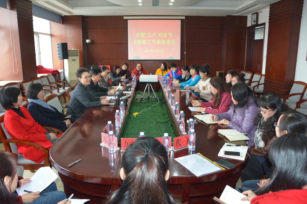3月7日下午,在国际劳动妇女节来临之际,学校召开庆祝三八节女教职工代表座谈会,向女职工们表达节日的问候和祝福。校党委书记王育伟、党委副书记梁中贤、工会主席张艳霞以及来自全校教学、科研、管理和服务岗位的女职工代表参加了座谈会。