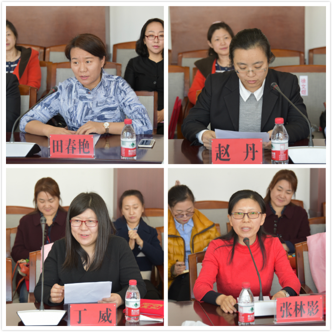 座谈中,荣获学校“巾帼建功”优秀团队称号的教育科学学院农村教育研究团队代表田春艳,荣获学校“巾帼建功”先进个人称号的财务处工作人员赵丹,荣获牡丹江市最美家庭之“读书学习家庭”称号的西方语言学院教师丁威,荣获黑龙江省“牡丹江市最美妻子”称号的的应用英语学院教师张林影分别发言,分享经验、交流感受。